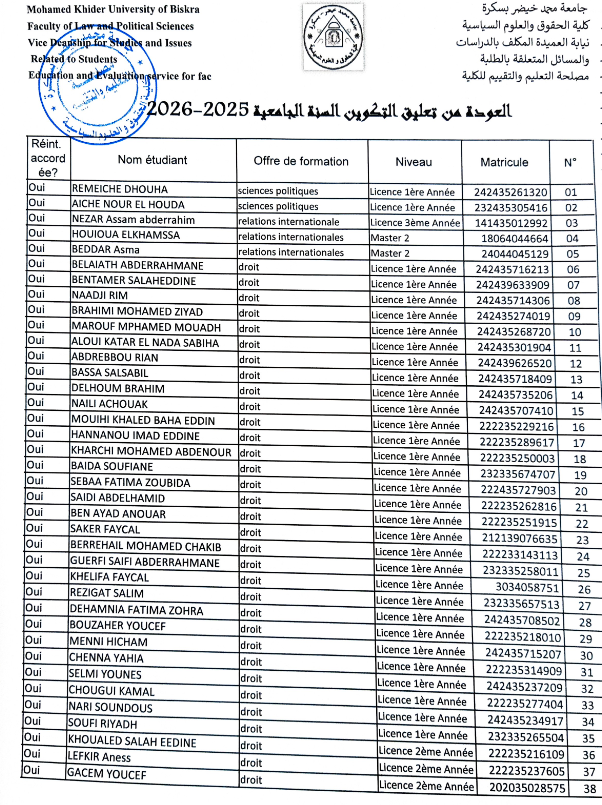 نيابة العمادة لما بعد التدرج و البحث العلمي و العلاقات الخارجية